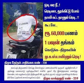 தமிழகத்தில் அருவருப்பாக கீழ்த்தரமாக மக்கள் நிற்க முடியாதபடி அசிங்கமாக பேசுவது கடந்த 70 ஆண்டுகளாக ஈ.வெ.ராமசாமி நாயக்கர், சி.என்அ.ண்ணாதுரை, கருணாநிதி & ஸ்டாலின் என அந்தப் பண்பு தொடர்கிறது இது ஒழிய திமுகவிற்கு ஓட்டுப் போடுவதை தமிழர்கள் தவிர்க்க வேண்டும்.